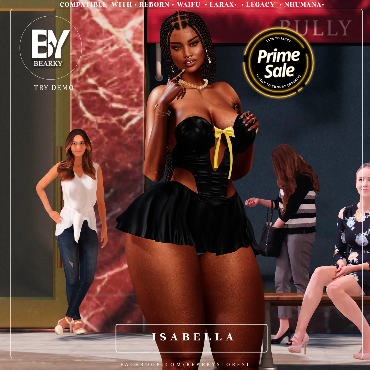 It’s not mandatory, but being in our in-world group and following our social media can give you access to: