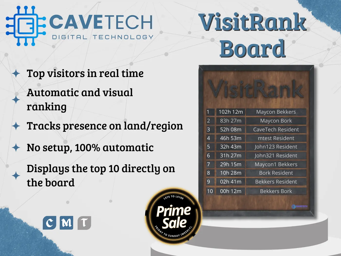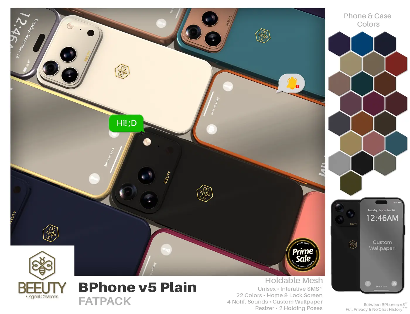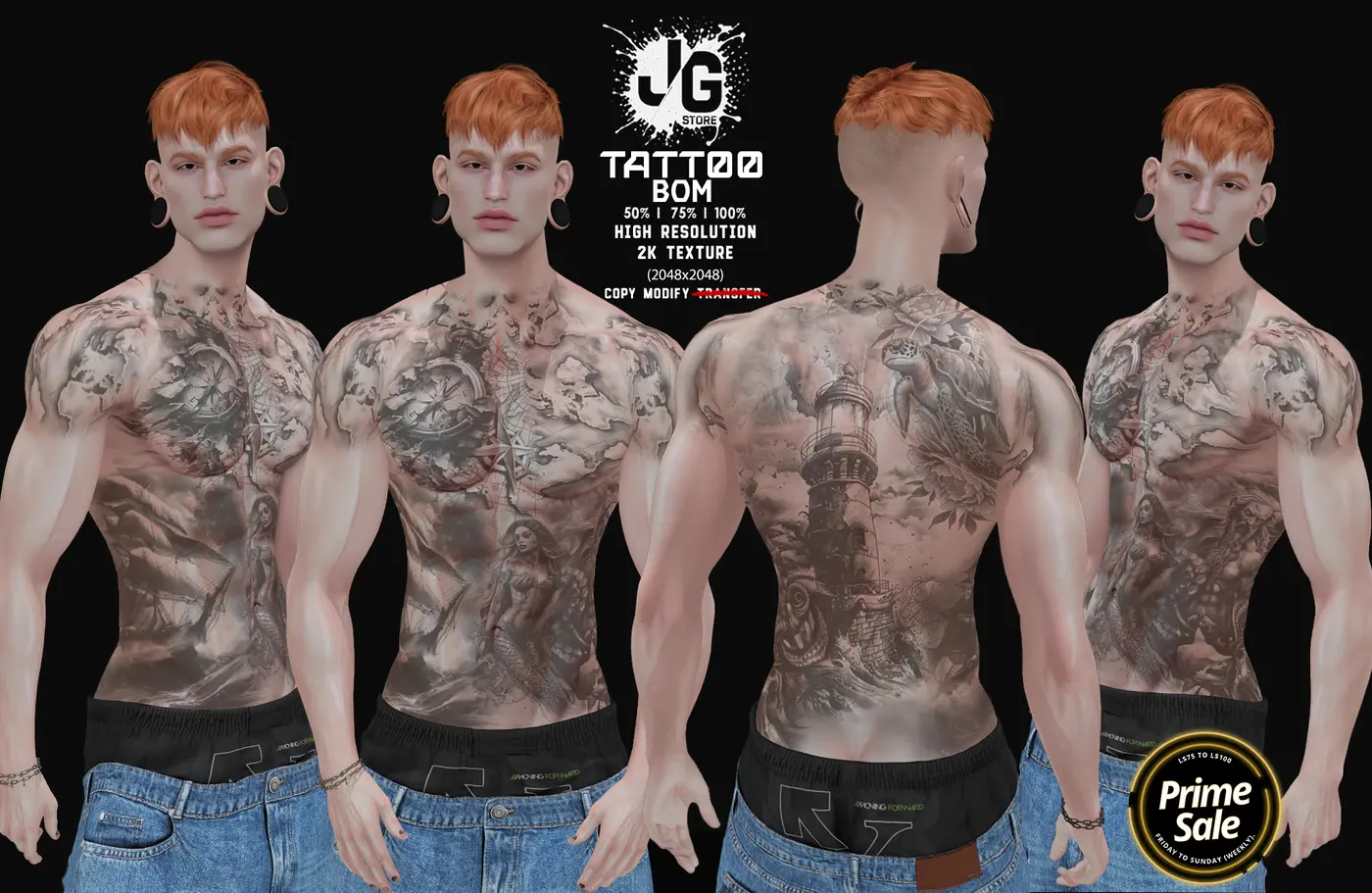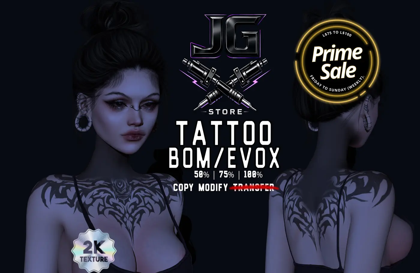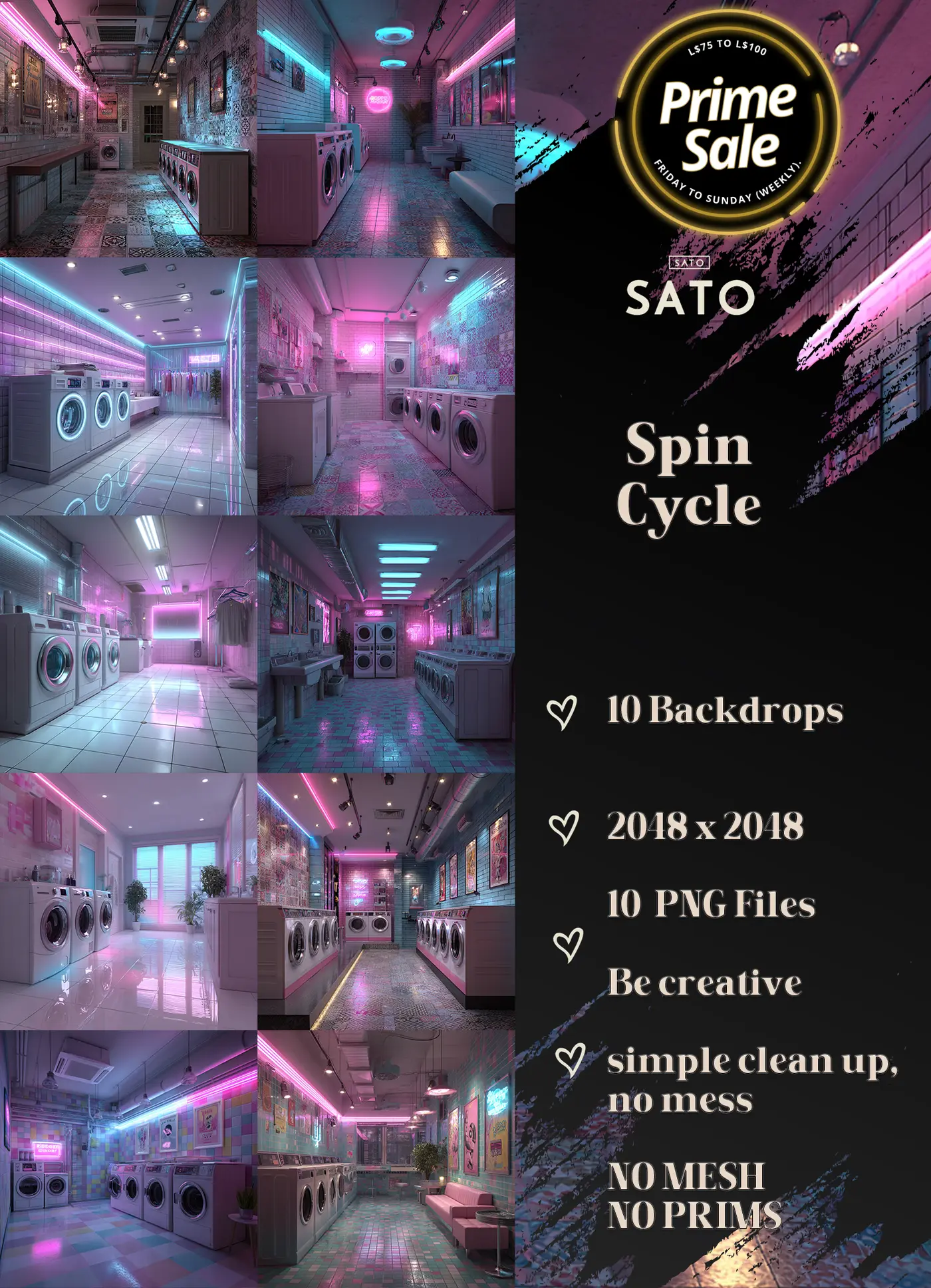 Prime Sale is a weekly sales event featuring items offered by various stores at discounted prices ranging from L$75 to L$100.