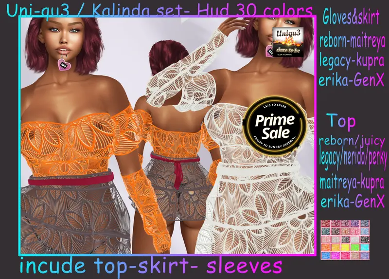 š 20 Round Prime Sale April 17th - April 20th š Hello, Second Life friends! The Prime Sale promotions are now live! Every week we bring together an amazing team of designers bringing you beautiful and exclusive products to enjoy. Don't miss out! š All items available Friday through Sunday šØ ALL PRICES ARE BETWEEN 75-100 EXCEPT FOR FATPACKS š PRIMFEED : https://www.primfeed.com/primeevent š WEBSITE : https://primesalesl.com/ š DISCORD : https://discord.gg/TtTDEtrf š GROUP SL : secondlife:///app/group/2b8095ce-8533-4ec3-abba-171f62cfddf2/about